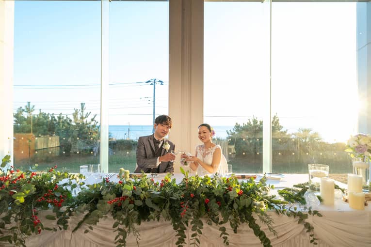 サンセットの美しい景色と、ふたりのセンスが調和するパーティー